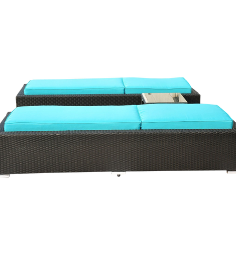 • Outsunny 3-Piece Rattan Wicker Patio Chaise Lounge Chair Set with Table
